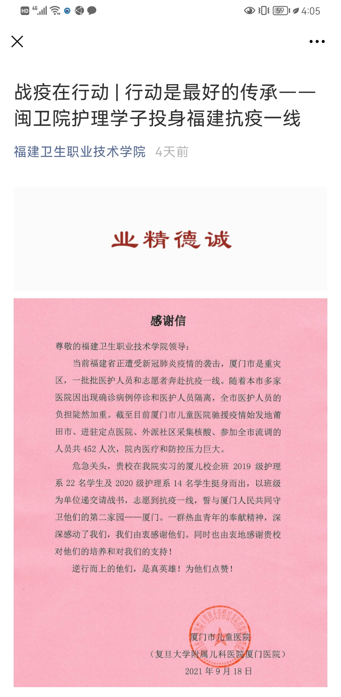 为进一步引导未来的医药卫生工作者正确面对疫情,积极号召同学们学习白衣天使们“疫”往无前,勇于担当的精神。全校辅导员积极了解广大实习生和毕业校友参加抗“疫”的故事和先进事迹,依托校院两级新媒体平台广泛宣传,不断坚定青年学子的信心,进一步弘扬爱国奋斗精神,引导学生把“小我”融入“大我”,勤奋学习,刻苦钻研,上好疫情防控这堂思想政治大课。