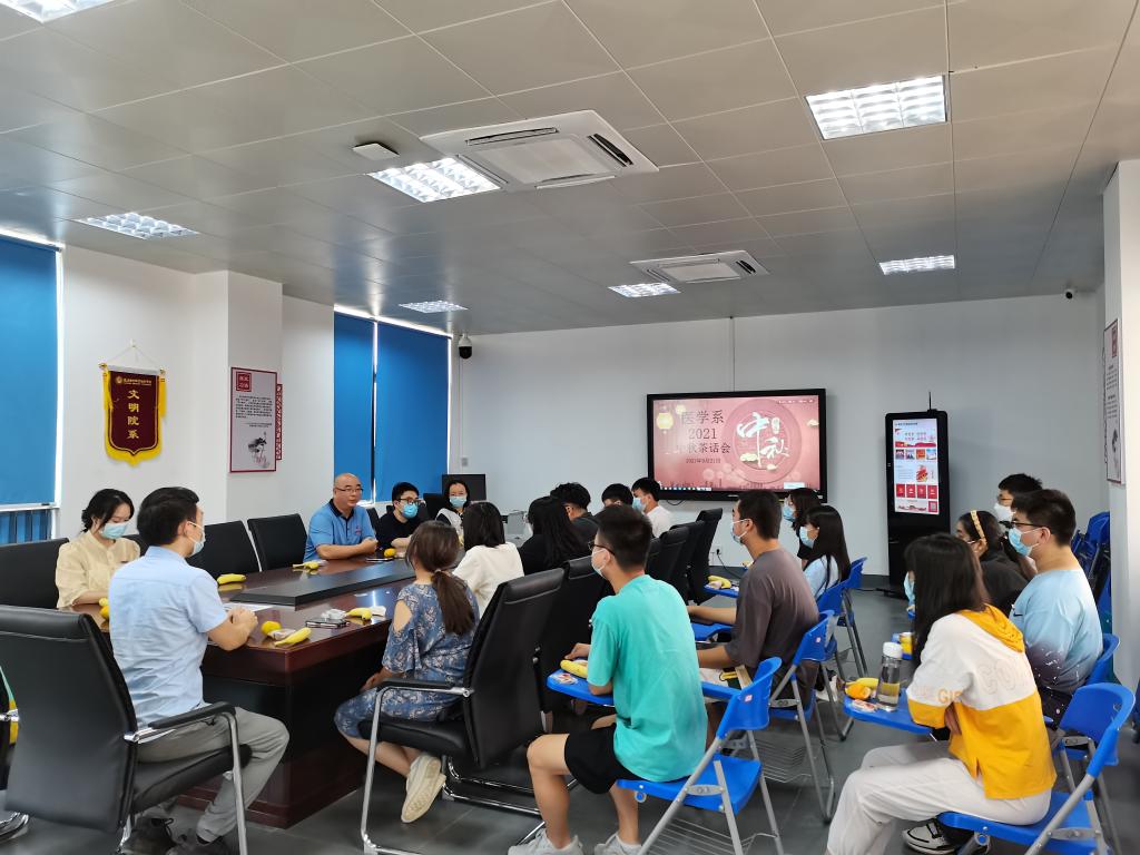 疫情期间,恰逢“中秋佳节”,根据防控要求,学生原地不动,校园过节。面对这一情况,校党委书记曾武祈、副校长黄铭珊及学生工作部、医学系一行前往慰问高本贯通班学生。医学系党总支书记邱滚忠中秋节当天在实训楼311召开了中秋慰问座谈会,现场准备了中秋月饼、小零食,对在校过节的学生代表送上了问候和祝福,鼓励同学们在特殊时期做好个人防疫、配合学院系部工作、团结一致克服困难。当天,所有辅导员深入宿舍,为同学们送上节日祝福和关心。尤其是对集中观察的同学们,送上中秋月饼表达关爱,做好心理疏导工作,并叮嘱学生配合疫情防控要求做好信息报送和隔离工作。