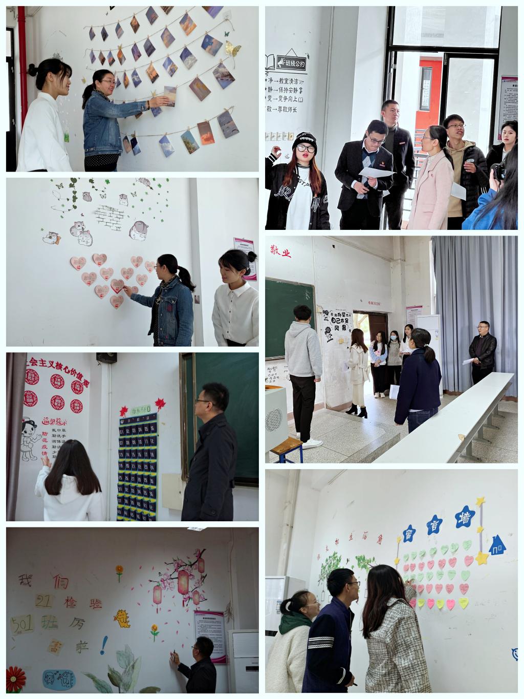大赛总评阶段,副校长黄铭珊带领学生工作部、团委、各二级院系学生管理人员对班级布置的成果进行综合评价。评委们认真走访了每一间参与布置的教室,聆听各班级宣传委员对本班教室氛围布置理念与过程的阐述。黄铭珊充分肯定了本次活动的意义,她指出,学风建设是我校学生管理的重要内容,教室氛围的营造让学生在富有专业特色的环境中感受职业文化的熏陶,在美化教室的同时形成了良好的育人氛围。
