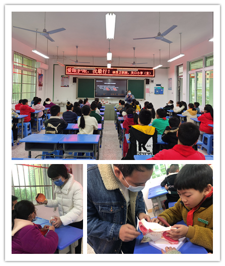 活动中,王珊珊老师用浅显易懂的语言向关口小学师生介绍了“一增一减一尺一拳一寸”五个一口诀,让学生在学习和日常生活中学会科学用眼,预防近视。