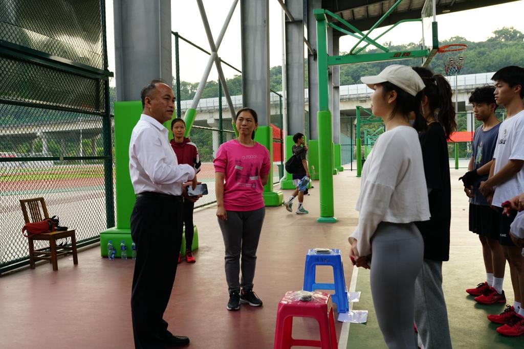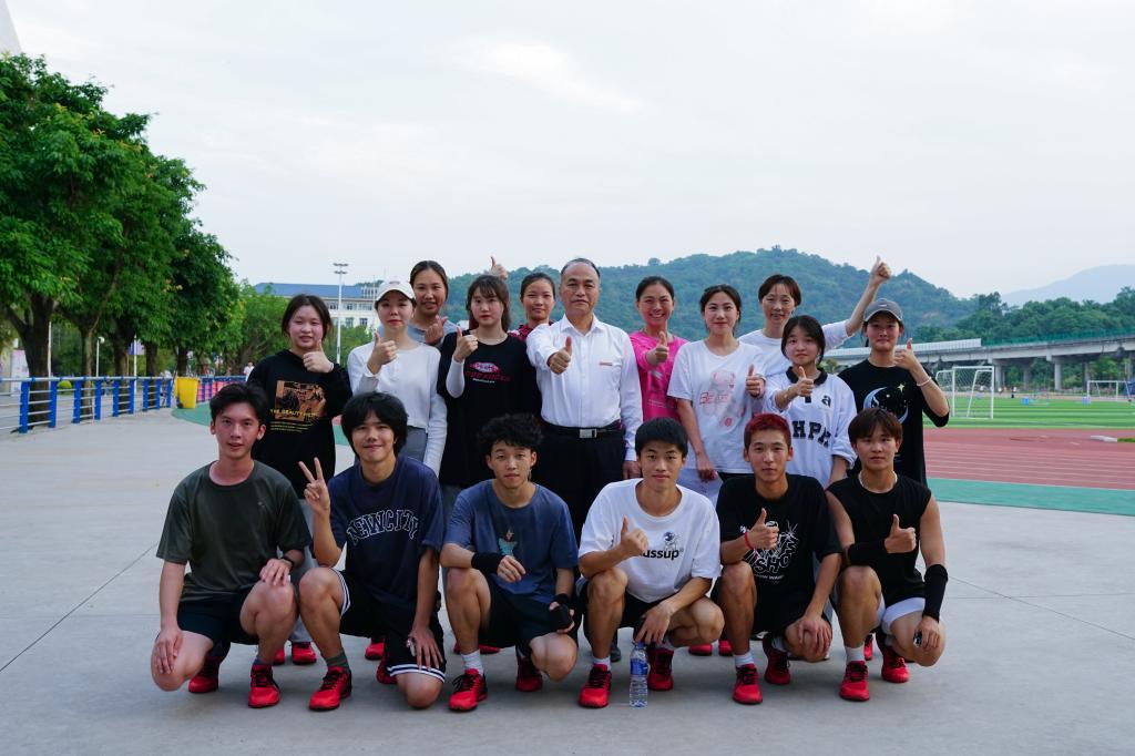 近日,校长许能锋来到田径运动场,看望校定向越野队,与师生们亲切交流,并指导训练工作。