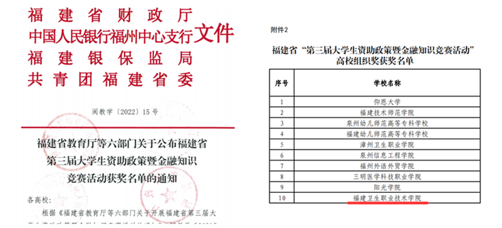 近日,福建省教育厅等六部门公布福建省第三届大学生资助政策暨金融知识竞赛活动获奖名单,我校荣获高校组织奖,这是我校连续三届获此奖项。