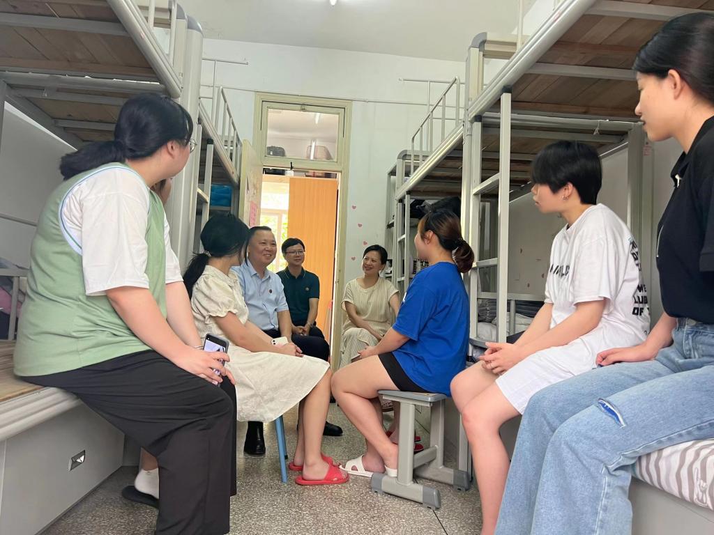 6月22日下午,校党委书记曾武祈深入健康管理系学生宿舍,走访看望2022届毕业生,与健康管理系预防医学、医学美容技术等专业部分毕业生代表进行座谈,表达学校对毕业生们的深切关怀和美好祝愿。学生工作部部长陈俊颖、健康管理系党总支书记叶海陪同走访。