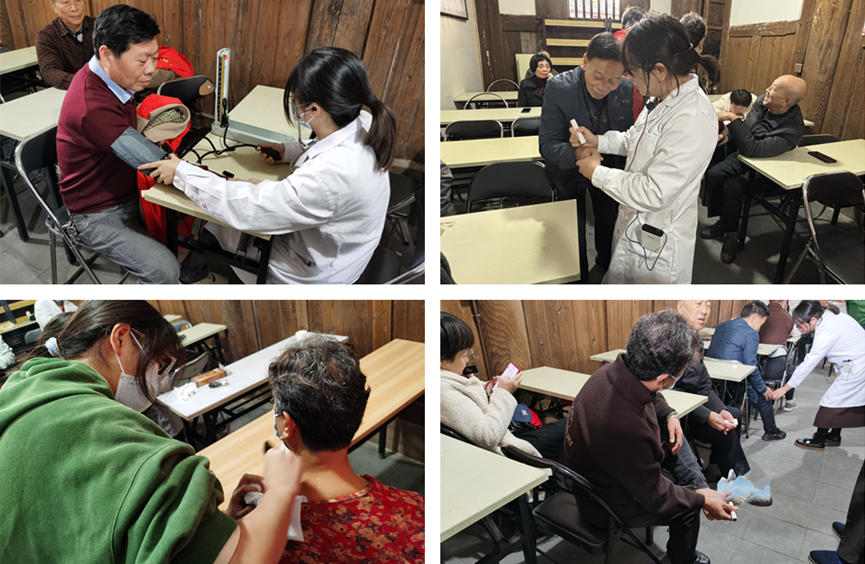 课后,医学院林丹丹老师组织师生为居民们带来艾灸、刮痧、拔罐、血压测量等系列义诊服务,专业的手法、暖心的叮嘱,赢得了居民的一致好评。