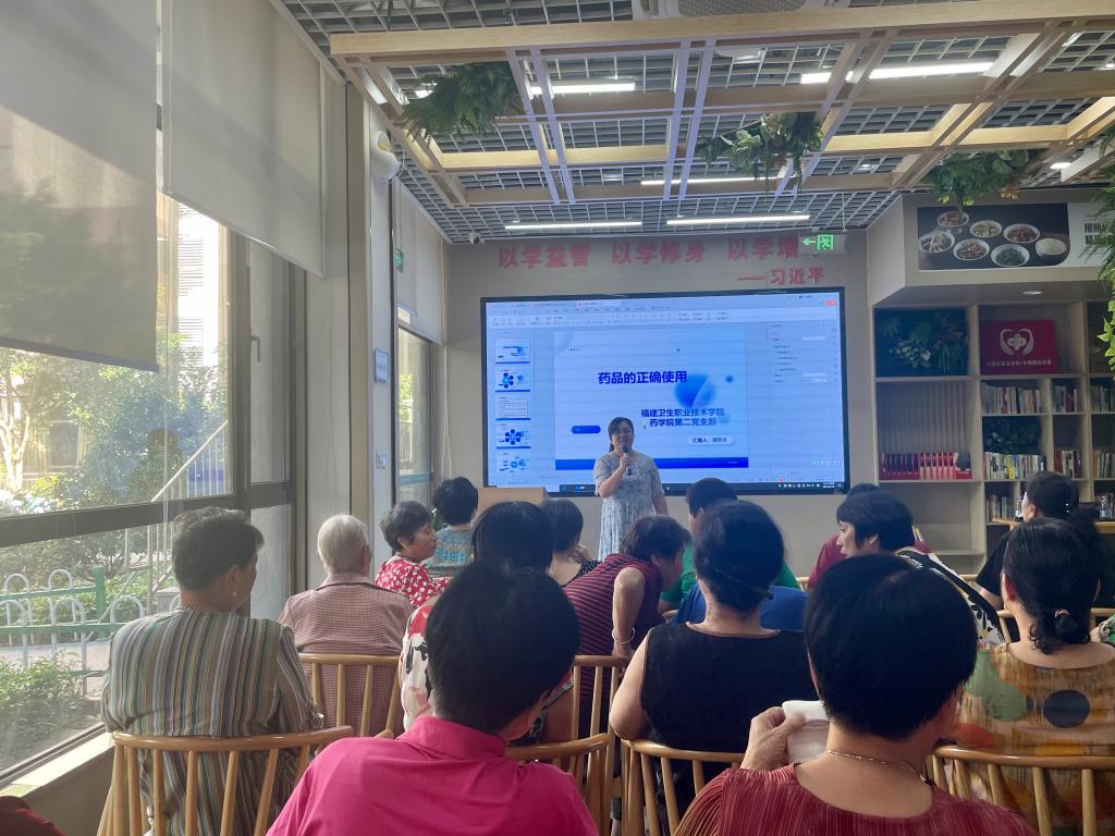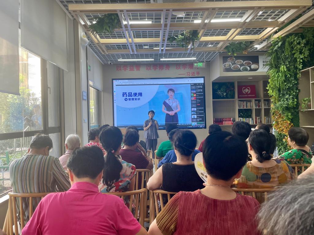 活动伊始,药学院第二党支部书记刘丹丹带来的科普小讲座《药品的使用与管理常识》,为社区听众科普了如何区分药品与非药品以及如何判别合格药品与假劣药品。接着,潘雪丰老师详细地为社区居民讲解了《药品的正确使用》,如药品的服用时间、食物对药物的影响、常用制剂的用法与注意事项等,从日常用药小知识出发,引导社区居民安全合理用药。