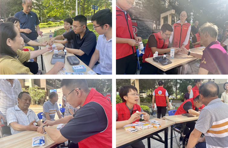 科普讲座后,全体党员为在场群众免费进行用药咨询、血糖检测等,热情解答社区居民用药疑虑,向社区居民展示家庭医药箱中常备的药品,详细讲解各类药品的正确服用方法和注意事项,并特别强调了过期药品的危害,提醒居民们要时刻关注药品有效期,避免误服过期药品带来健康风险。在血糖监测过程中,针对居民提出的血糖问题,党员们耐心细致地进行解答,并给予个人健康指导,体现教师们服务社会、服务人民的高尚情怀。