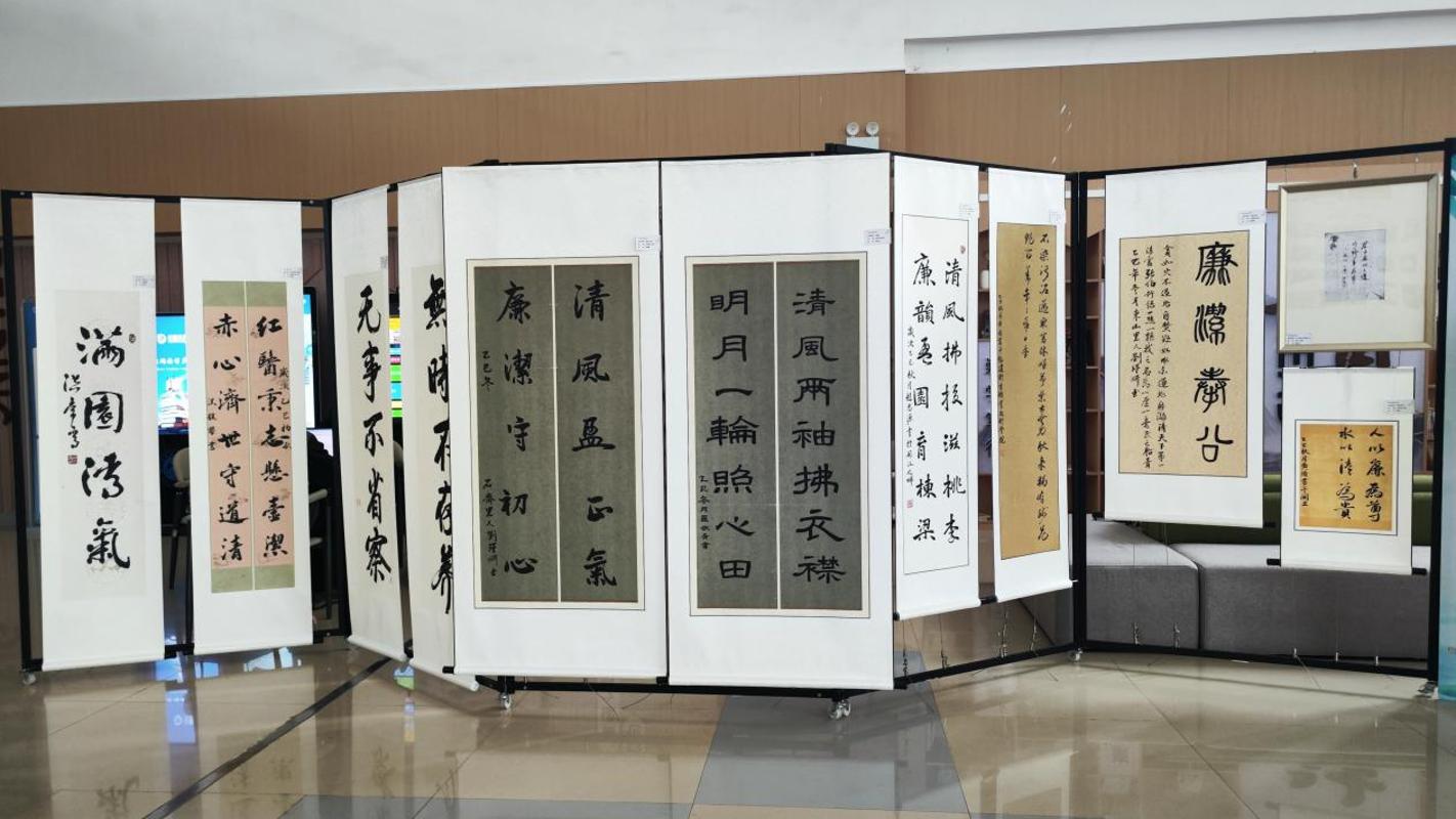 活动伊始,校领导为本次主题艺术作品展揭幕,并在共书“廉”字活动中开启首次观展。作为深化校园廉洁文化建设的重要举措,本次展览自启动作品征集以来,便得到了全校师生的积极响应和踊跃参与,共征集到各类作品150余件,涵盖书画、摄影、手工、剪纸、微视频等。参展作品融汇古今廉洁文化精髓,创作者们以笔为媒、以艺传情,通过书画的笔墨风骨、工艺的匠心巧思、文学的质朴文字、影像的生动叙事,多维度诠释崇廉拒腐的价值理念,既传承了中华优秀传统文化中的清廉基因,又彰显了新时代廉洁文化的创新表达。