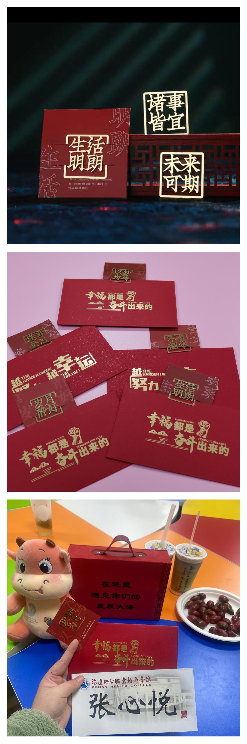 渐入有年数,喜逢新岁来。“红包”是中国人春节亲人间彼此的守护和关怀,也饱含了长辈对晚辈深深的祝福。临近2022年底,座谈会最后,曾武祈代表闽卫院“家长们”为学生代表送上了美好寓意的“红包”,以“签”祝学子,遥送学生家长。希望学子们在闽卫大家庭里以梦为马,生活明朗,遇见自己的星辰大海,终不负韶华,平生欢喜。