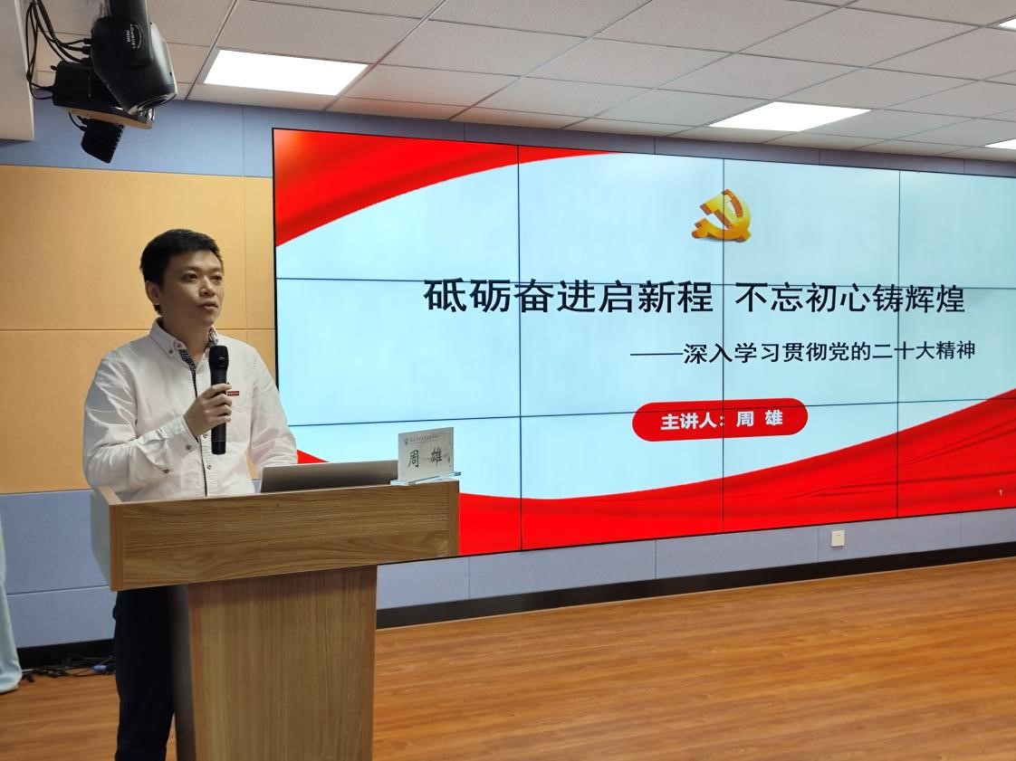 周雄指出,党的二十大是在全党全国各族人民迈上全面建设社会主义现代化国家新征程、向第二个百年奋斗目标进军的关键时刻召开的一次十分重要的大会。我们要更加紧密地团结在以习近平同志为核心的党中央周围,高举中国特色社会主义伟大旗帜,全面贯彻习近平新时代中国特色社会主义思想,深刻领悟“两个确立”的决定性意义,增强“四个意识”、坚定“四个自信”、做到“两个维护”,弘扬伟大建党精神,自信自强、守正创新,踔厉奋发、勇毅前行,为全面建设社会主义现代化国家、全面推进中华民族伟大复兴而团结奋斗。