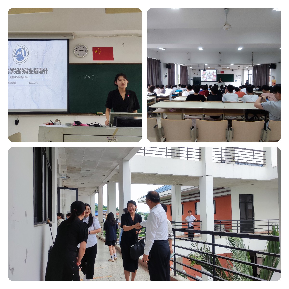 福建国药器械有限公司本次招聘代表是公司副董事长助理、我校医学影像技术专业毕业生林诗婷。应医学技术系邀请,林诗婷不仅介绍了公司情况和招聘岗位需求,还分享交流了自身在校的学习、实习、求职感悟及职场工作经验,为学弟学妹们送上一份诚意满满的“就业指南针”。许能锋同林诗婷亲切交流,欢迎优秀校友返校招聘,为学弟学妹引路职场,同时表示希望更多的校友们能积极牵线搭建就业平台,助力母校就业工作。