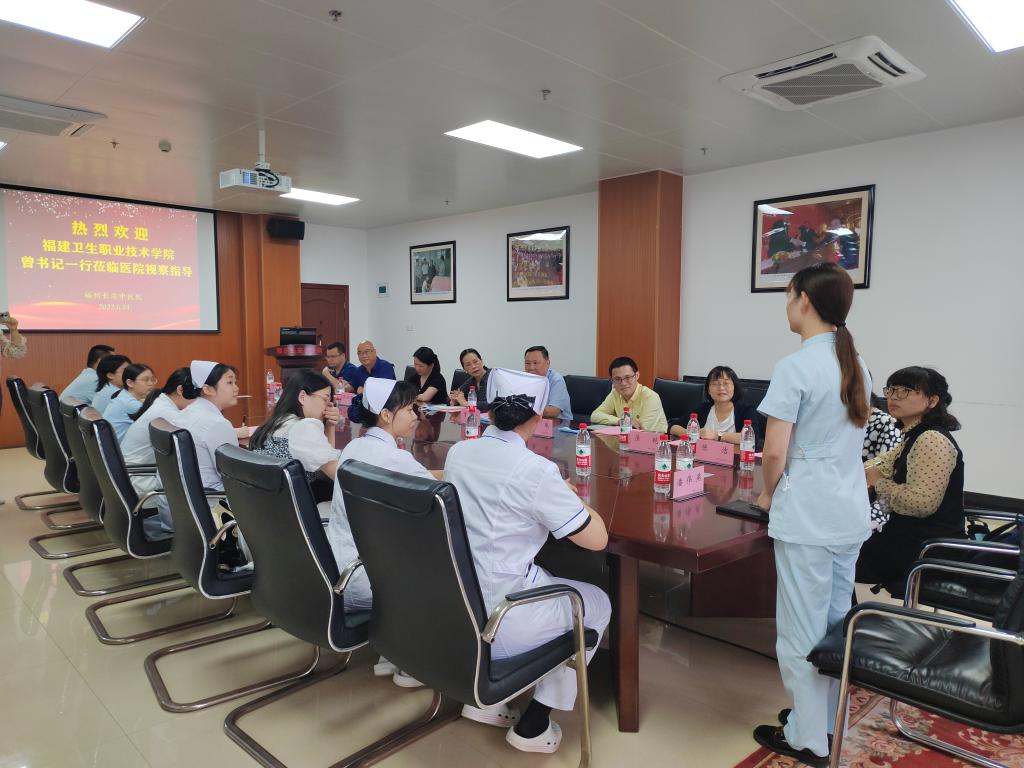 在福州长安中医院,院长陈晓刚从医院成立初心、发展现状、擅长领域、特色诊疗到服务团队,全方位介绍了医院发展的基本情况,并通过生动形象的“三张名片”,展示了良好的医院文化。他对我校已在医院就业的30多位毕业生表示高度赞赏,并表示,医院会继续吸纳我校优秀人才,尤其是康复治疗技术专业的毕业生,与我校开展全方位的合作。