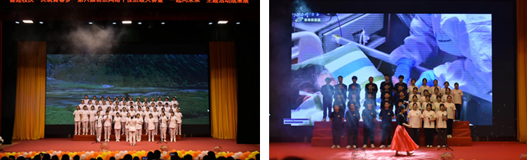 朗诵片段《少年中国说》及大合唱《我的未来不是梦》告诉同学们只有坚定信心,才会圆梦;朗诵、大合唱《医路向前—致敬最美逆行者》表达了对最美逆行者的崇高敬意。