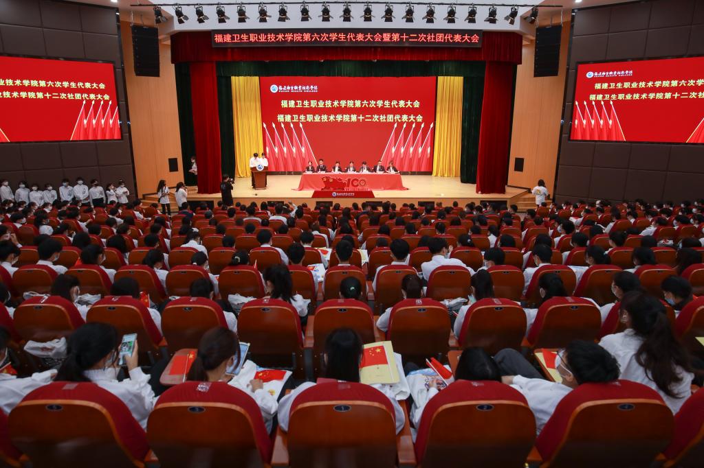 生逢盛世,使命在肩。2022年5月21日,福建卫生职业技术学院第六次学生代表大会暨第十二次社团代表大会在学术报告厅胜利召开。福建卫生职业技术学院党委委员、副校长黄铭珊,党委学生工作部部长陈俊颖、团委书记林桂松、各院系团总支负责人、各社团指导老师以及500余名学生代表参加,福建省学生联合会驻会主席苏弘戬、兄弟院校学生会、学生社团代表应邀参会。