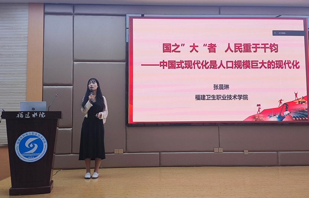 在示范课巡讲环节,张晨琳以《国之大者 人民重于千钧——中国式现代化是人口规模巨大的现代化》为题,围绕“立足国情:人口规模巨大的现代化”“发展要义:现代化的本质是人的现代化”“赓续接力:绘就中国式现代化青春画卷”三个方面梳理本讲的内在逻辑。张晨琳的教学展示思路清晰,教学设计富有特色,具体体现党的二十大精神“三进”工作的推进,获得评委专家和与会老师的一致好评。