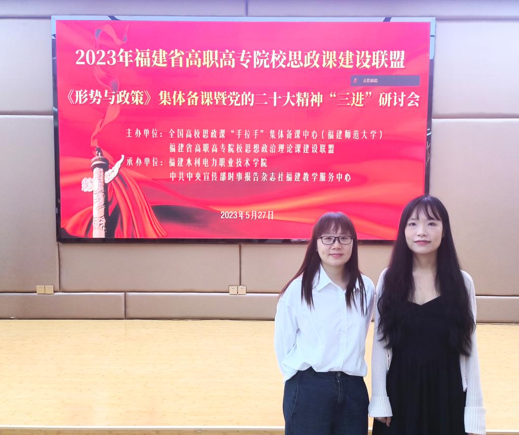 2023年5月26日-27日,我校马克思主义学院院长熊美兰、青年教师张晨琳赴永安参加《形势与政策》集体备课暨党的二十大精神“三进”研讨会议。本次会议由全国高校思政课“手拉手”集体备课中心(福建师范大学)和福建省高职高专院校思想政治理论课建设联盟主办,由福建水利电力职业技术学院和中共中央宣传部时事报告杂志社福建教学服务中心承办。全省30多所高职高专院校近百名专家、学者、思政课教师齐聚一堂。