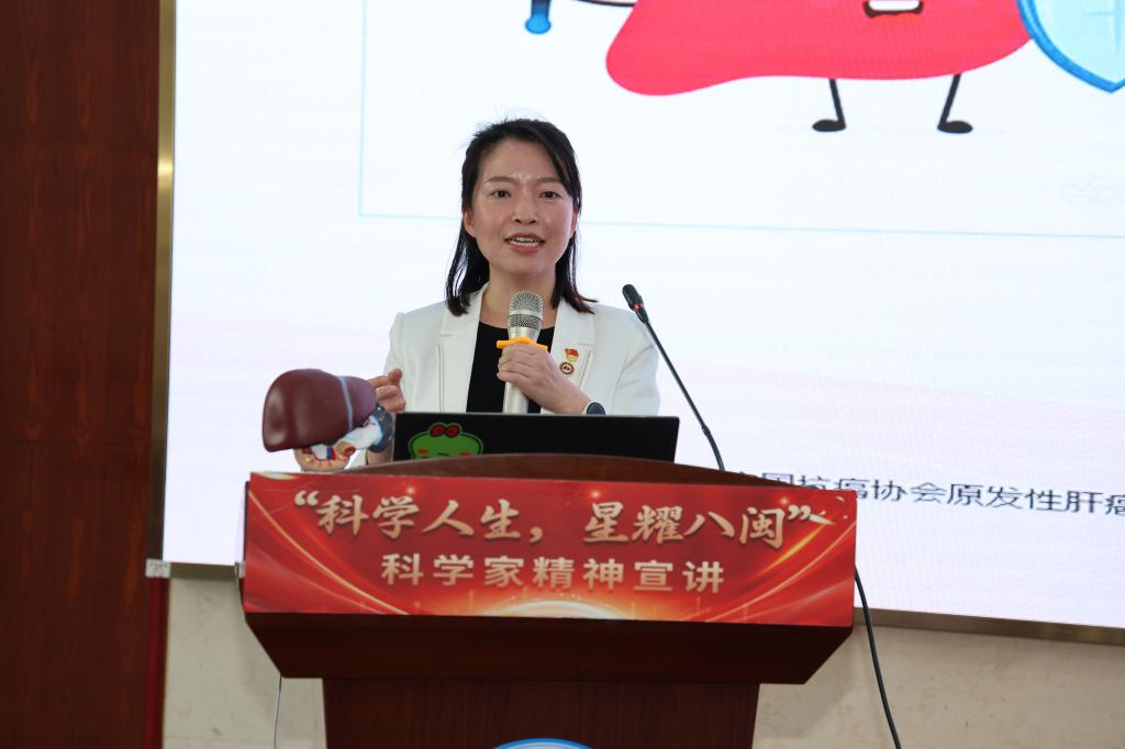 随后,全国科学家精神教育基地吴孟超院士先进事迹展示馆负责人、福建医科大学孟超肝胆医院党政办主任王家寿,福建省肿瘤质控中心免疫治疗质控专家、福建医科大学孟超肝胆医院副主任医师郭爱萍分别以《走进吴孟超的医学世界》《肝病的防治策略科普及成功案例分享》为题进行吴孟超科学家精神主题宣讲,通过丰富的史料、生动的故事、精彩的讲授,传递吴孟超院士爱党爱国爱民的“三爱情怀”和勇闯禁区、勇攀高峰、永不满足、永远争先的四勇(永)精神。