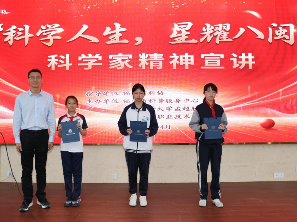 为深入贯彻落实习近平总书记关于思政课建设作出的重要指示精神和新时代学校思政课建设推进会精神,贯彻落实《教育强国建设规划纲要(2024—2035年)》,持续推动大中小学思政课一体化建设,打造共学共研共享育人新格局,4月18日,由福建省科协指导,我校与福建省科普服务中心、福建医科大学孟超肝胆医院共同主办的“科学人生 星耀八闽”科学家精神宣讲活动顺利举行,来自我校和闽侯县职业中专学校、闽侯县教师进修学校附属中学、闽侯县荆溪小学学区等相关单位的200多名代表参会。