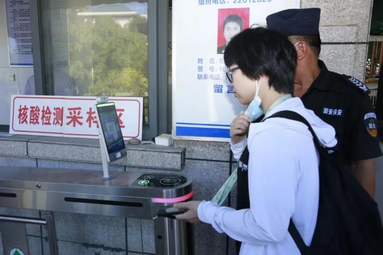 升级校门口出入道闸设备,对接健康码系统,入校人员无须掏出手机打开健康码,只要“刷脸”即可自动检测、快速通行,解决手机打开健康码等待时间长造成的门口人员聚集问题,极大提升了人员入校的通过效率。
