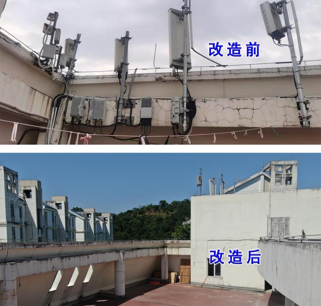 拆除并优化明湖餐厅4楼等场所的运营商基站抱杆,消除管线“蜘蛛网”等视觉污染,校园环境更加清爽整洁。