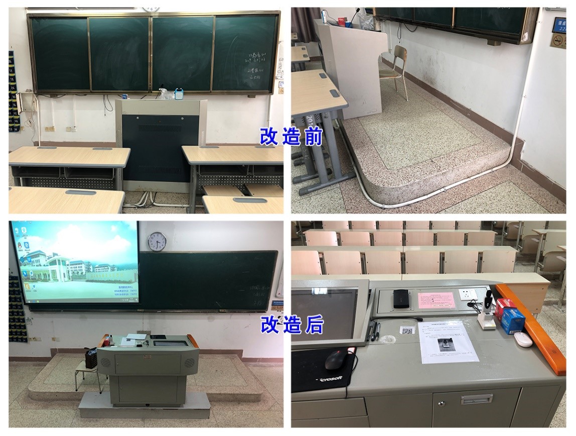 学校分批对教学楼教室进行线路改造,将教室内裸露的线缆重新更换并开槽铺设暗线,解决教室线路老旧、投影不清晰等问题;升级教室麦克风等设备,提高扩声质量,营造优质教学环境。