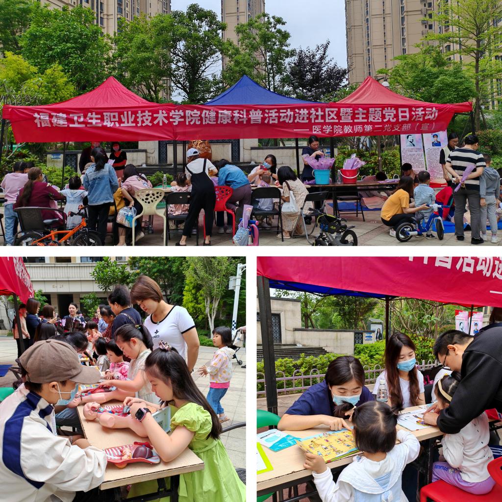 为推动学习贯彻习近平新时代中国特色社会主义思想主题教育走深走实,发挥“双带头人”教师党支部工作室辐射作用,结合2023年职业教育活动周相关活动安排,在5月14日母亲节这个充满爱的日子,由医学院、校团委、中铁二局瑞城物业管理有限公司福州分公司联合主办,医学院教师第二党支部、医学院团总支、医学院红十字会、健康科普青年讲团承办的“感恩母爱,健康陪伴”健康科普进社区暨主题党日活动,在闽侯县荆溪南亭社区中铁城如约开展。