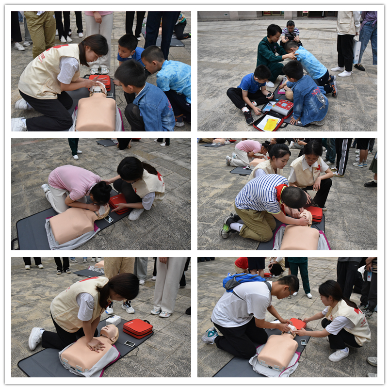“双带头人”洪霞教授带领支部党员以“理论+实践”相结合的方式,为在场学生及家长们开展心肺复苏术(CPR)与自动体外除颤器(AED)操作培训。培训中,洪霞老师用通俗易懂的语言和形象生动的图片向同学们介绍了心肺复苏急救知识以及心肺复苏的流程与要领。通过人体模型,就心肺复苏涉及的迅速呼救、胸外按压、开放气道、人工呼吸、自动体外除颤器等操作步骤进行分解演练,确保动作标准、力度到位。这种手把手的教学活动既强化了理论学习,又加深了实践记忆。