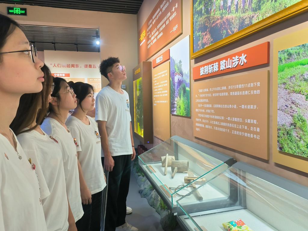 参观完下党乡政府旧址,李英老师组织实践队成员一同前往村委会办公场所现址。一路上,乡村的多姿多彩和几十年来强烈的变化让实践团队真切感受到国家乡村振兴取得的伟大成就。在村委会,李英老师带领师生们领学了《习近平在宁德》中关于“三进下党”的相关内容,书中真实记录习近平总书记在工作时以深入调研起步,提出“弱鸟先飞”“滴水穿石”“久久为功”“四下基层”等创新理念和工作精神,生动再现习近平总书记立足长远的战略思维,求真务实的领导作风,贴近群众的真挚情怀和功成不必在我、功成必定有我的胸襟境界,激励引导实践队成员脚踏实地、笃行不怠,以勇于担当的责任感、时不我待的紧迫感,为中华民族伟大复兴贡献青春力量。