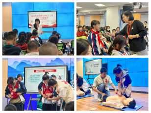 结绳训练、火灾模拟逃生、地震防御……大家在红十字生命教育体验学堂通过互动展示、模拟体验等形式,深入了解了一系列生命科学知识,深化了对生命的敬畏心理。随后,与会师生接受心肺复苏术、创伤包扎、AED等急救知识技能培训,在实操演练中增强应对突发事件的能力,深切感悟到“人道、博爱、奉献”的红十字会精神。这堂立足于生命健康教育的“大思政课”,凸显了体验式、沉浸式的实践教育教学,弥补了“思政小课堂”的不足,为大中小学思政课一体化建设提供了独特资源和特色模式的参照经验。
