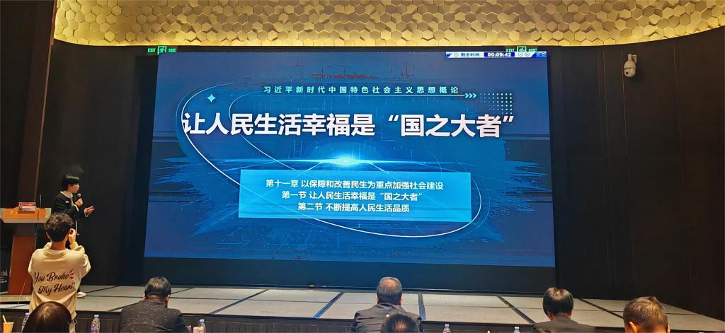 在教学展示环节,我校思政骨干教师郑冰以《让人民生活幸福是“国之大者”》为主题,以说课的形式,从教学设计、教学实施以及教学反思等环节进行了精彩的教学示范,为打造高质量思政金课提供了生动范例。