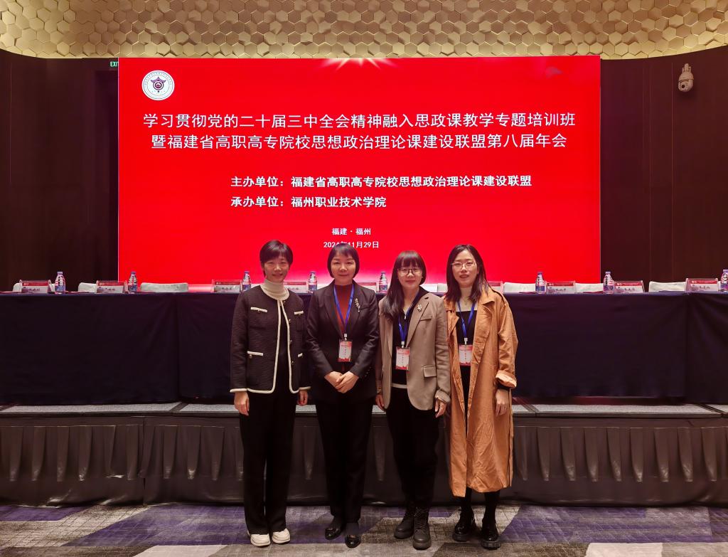 11月28日至30日,由福建省高职高专院校思想政治理论课建设联盟主办的学习贯彻党的二十届三中全会精神融入思政课教学专题培训班暨第八届年会在福州召开。我校党委副书记李美华,马克思主义学院相关负责人及老师参加会议。我校当选为联盟理事会副会长单位,马克思主义学院院长熊美兰当选为常务副秘书长。
