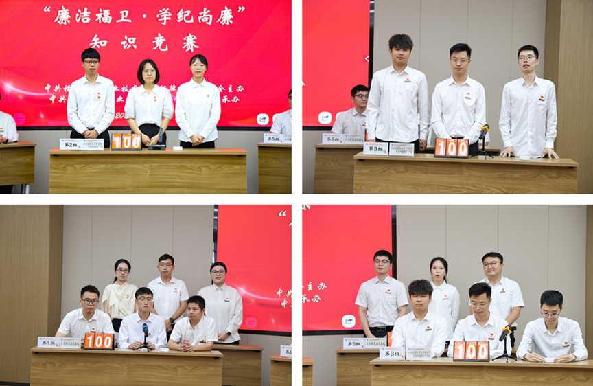 此次知识竞赛紧密围绕习近平总书记关于加强党的作风建设的重要论述、中央八项规定及其实施细则、中国共产党纪律处分条例、党政机关厉行节约反对浪费条例等内容展开。各学院选派的五支师生代表队在“必答题”“抢答题”“风险题”这三个环节进行了精彩比拼,活动现场气氛热烈,参赛选手精神饱满、沉着冷静,既展现出扎实的政治理论素养,又展示了团队之间的紧密协作精神。