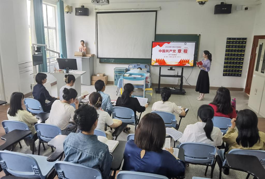 为贯彻落实党的二十大精神,深入开展学习贯彻习近平新时代中国特色社会主义思想主题教育,深刻领会新党章的内涵,进一步提升党员的党性修养和作风纪律。2023年5月4日,护理学院第一党支部召开专题党课学习《中国共产党章程》,由支部书记吴美丹主讲。