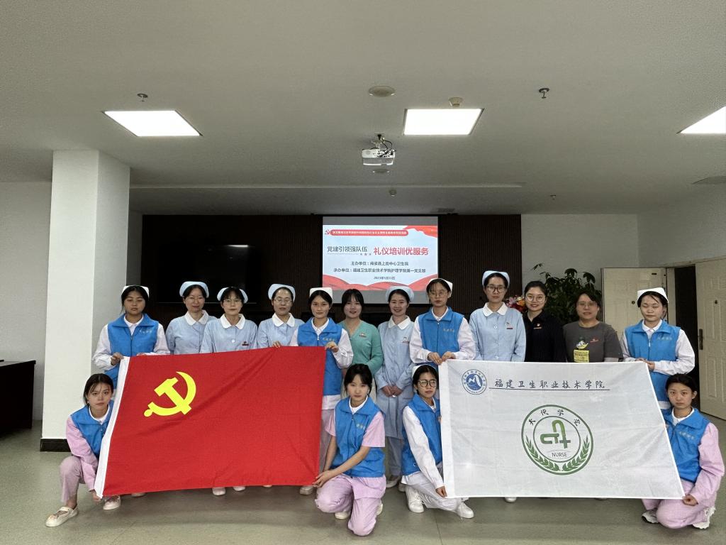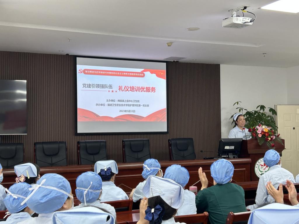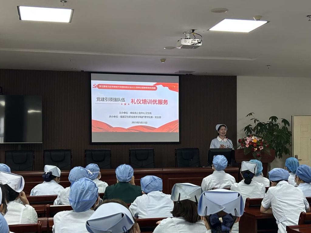 为深入开展学习贯彻习近平新时代中国特色社会主义思想主题教育,加强党建引领,强化责任担当,增强队伍的组织力和战斗力。在国际护士节来临之际,护理学院第一党支部“双带头人”吴美丹应闽侯县上街镇中心卫生院的邀请,带领支部党员为闽侯县上街镇中心卫生院全体护士开展“党建引领强队伍 礼仪培训优服务”护理礼仪与沟通培训。