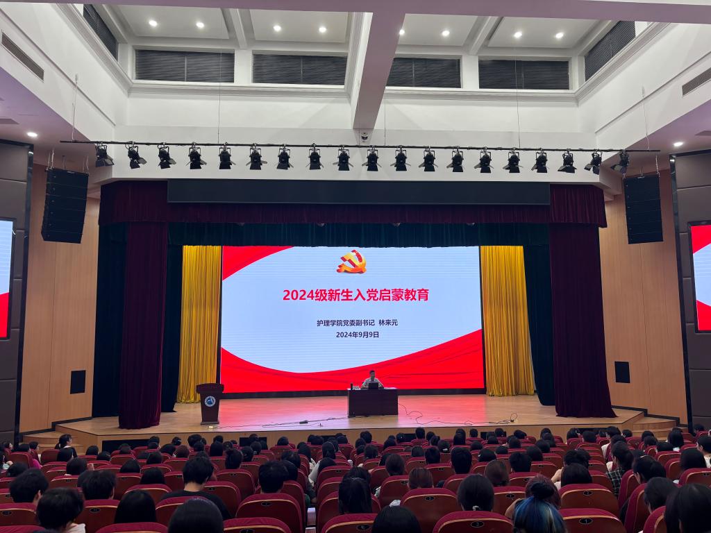 为深入学习贯彻习近平新时代中国特色社会主义思想和党的二十届三中全会精神,深化理想信念教育,激发爱党爱国热情,引导青年大学生坚定不移听党话、跟党走,护理学院党委于9月9日晚在崇学厅开展2024级新生入党启蒙暨党史学习教育专题党课。此次党课由学院党委副书记林来元主讲。