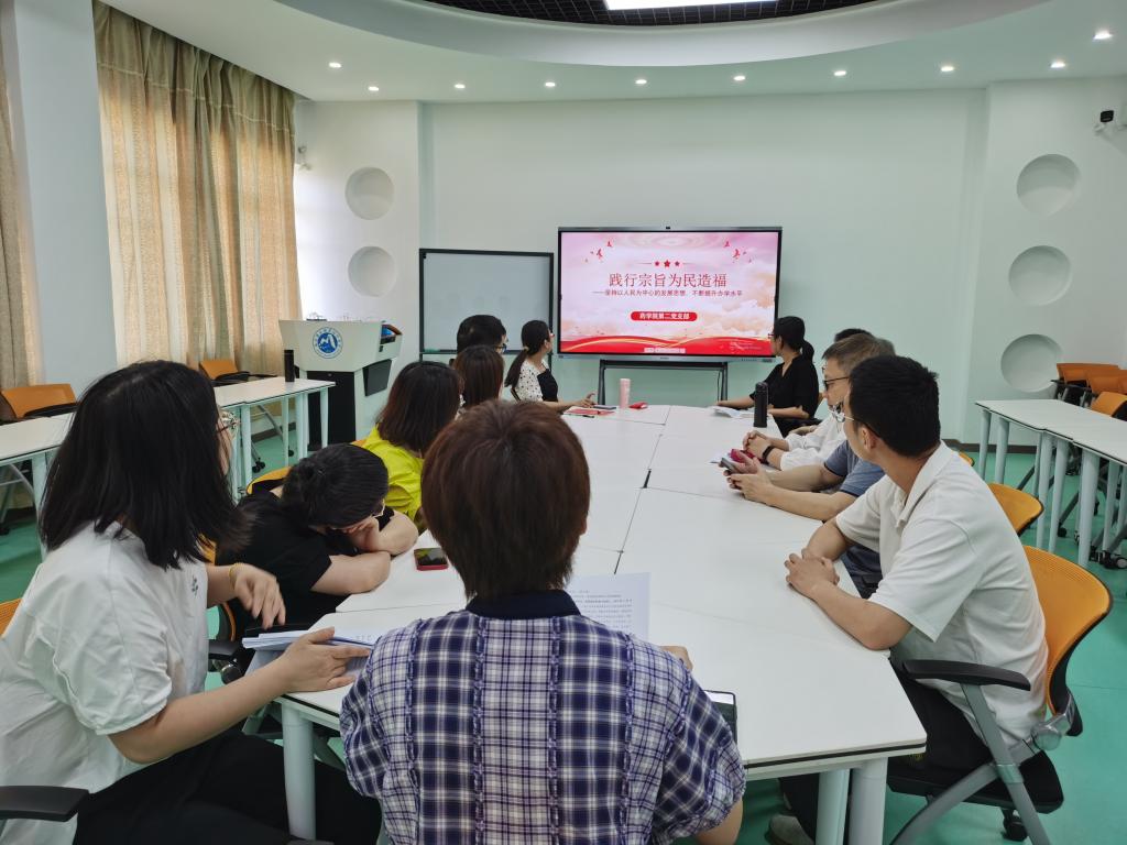 活动中,刘丹丹围绕主题领学了《习近平著作选读》有关篇章,并结合工作实际开展研讨交流。刘丹丹强调践行宗旨为民造福,是学习贯彻习近平新时代中国特色社会主义思想主题教育的具体目标之一。支部党员要牢固树立以人民为中心的发展思想,动员、组织和协调各方力量为推进职业教育改革努力,升级人才培养能力、深化产教融合,办好人民群众满意的职业教育。