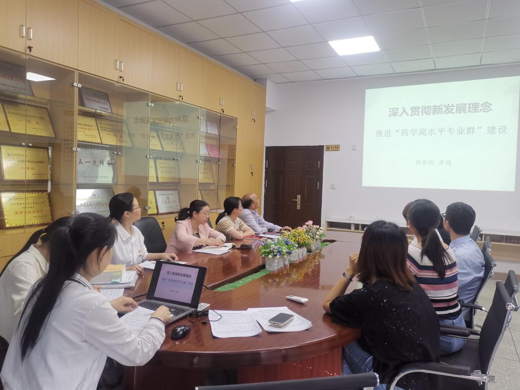 药学院副院长黄艳以《深入贯彻新发展理念——推进“药学高水平专业群”建设》为题,重点从深入贯彻新发展理念的内涵,推进“药学高水平专业群”建设的思考这两个方面进行了深入讲解。同时,客观分析了药学院发展现状,并紧密联系工作实际,就如何推进“药学高水平专业群”建设提出具体要求。