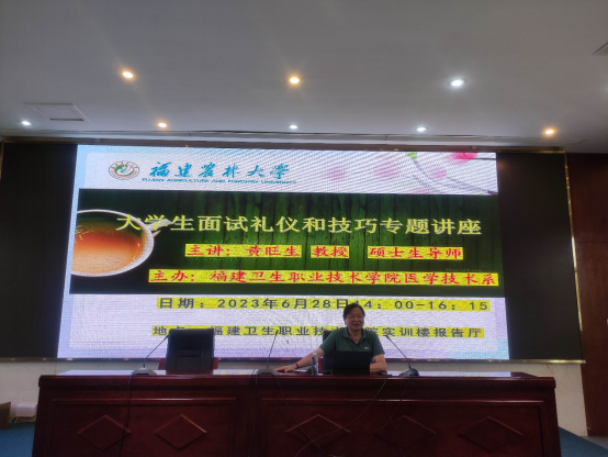 6月28日,福建农林大学黄旺生教授来校为医学技术系师生讲授就业指导讲座《大学生面试礼仪与技巧》。医学技术系党总支书记柯琼莺、辅导员代表及医学技术系2023届毕业生共同参加学习。