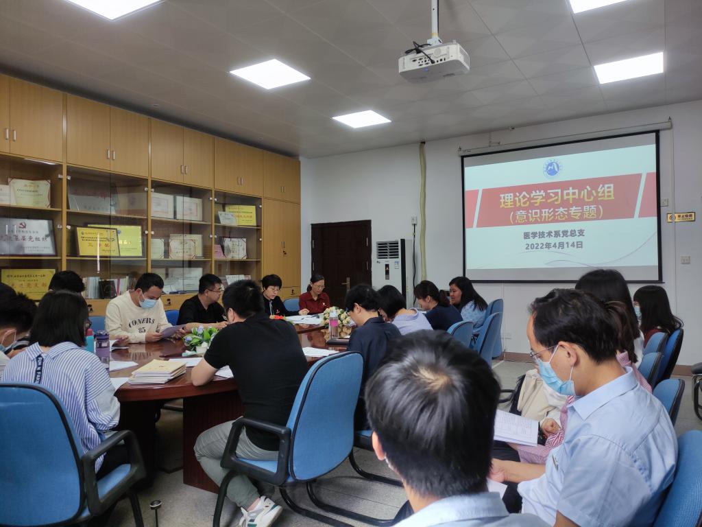 4月14日,医学技术系党总支书记柯琼莺主持召开理论学习中心组(扩大)会议,开展意识形态工作专题学习,传达学习2022年全省教育系统全面从严治党工作视频会议精神、《深入学习习近平关于教育的重要论述》第一章“从制度上确保把全面从严治党落到实处”、《习近平谈治国理政》第三卷 “坚持党对国家安全工作的绝对领导”《习近平新时代中国特色社会主义思想学习问答》第六章“为什么说保证国家安全是头等大事?”、关于全省教育系统疫情防控专项督导有关情况的通报、涉微信办公违规案例分析及启示等内容。