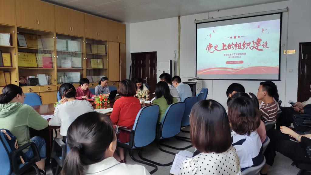 6月6日,医学技术与工程学院召开党纪学习教育读书班第五次学习暨党委理论学习中心组(扩大)会议,主要传达近期重要会议精神,专题学习《中国共产党纪律处分条例》第二编分则第八章对违反廉洁纪律行为的处分,并观看警示教育片、通报高校违反纪律的典型案例,开展党纪学习教育专题党课《党史上的组织建设》。本次学习由学院党委书记柯琼莺主持,全院教职工党员参加学习。