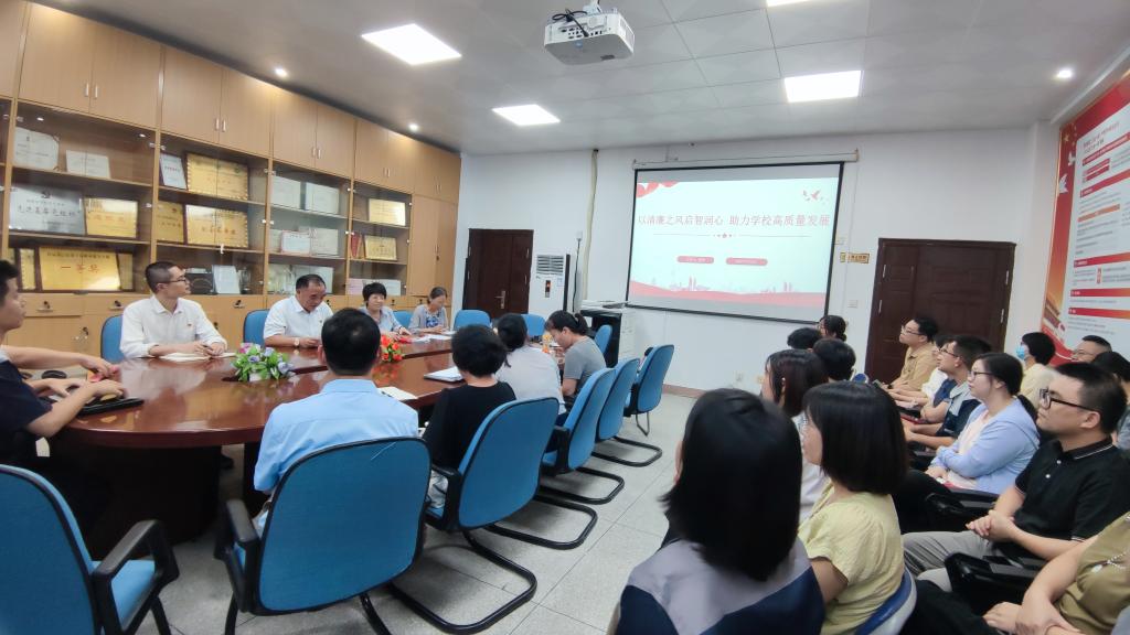 9月26日,学校纪委书记游锋以《以清廉之风启智润心 助力学校高质量发展》为题讲授廉洁第一课,医学技术与工程学院全体教职工参加学习。