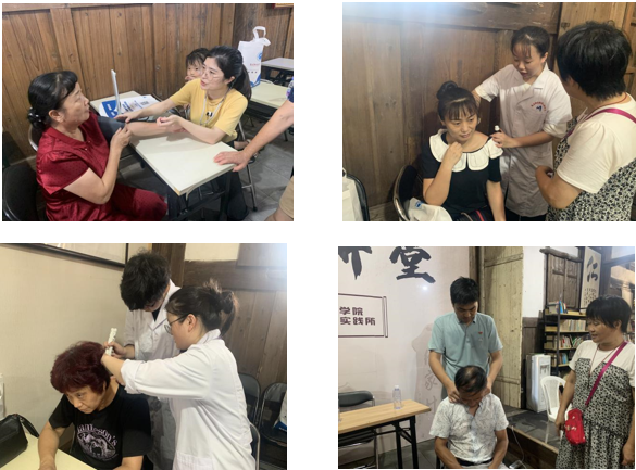 医学院教师第三党支部的师生党员们还根据群众的需要,为他们提供了推拿、拔罐、刮痧等中医特色疗法义诊,以及测量血压等服务,获得群众一致好评。大家表示,“中医科普义诊活动很好,在家门口就可以理疗保健,还能了解中医养生知识。”