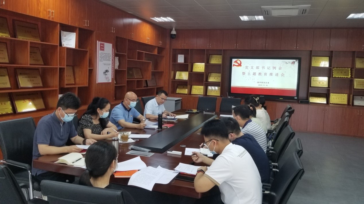 为做好学习贯彻习近平新时代中国特色社会主义思想主题教育,推进主题教育扎实深入开展,5月31日上午,医学院召开党支部书记例会暨主题教育推进会。会议由党总支书记邱滚忠主持,党总支委员、各党支部书记、副书记等参加。