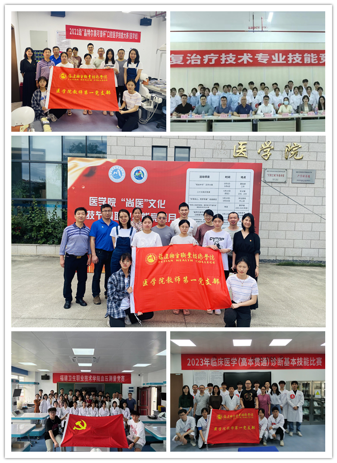 为深入学习贯彻习近平新时代中国特色社会主义思想,进一步加强校园文化建设,发挥校园文化的育人功能,丰富学生课外文化生活,营造“比、学、赶、帮、超”的良好氛围,4月至5月,医学院举行“技绎精彩,成就未来”2023年“尚医”文化科技节暨职业技能竞赛月活动。教师第一党支部党员教师发扬“党建引领业务”的精神,积极参与各项技能竞赛活动,师生联动,持续推进党建和业务双融合、两促进,不断将党支部打造成有特色品牌的新型党支部。