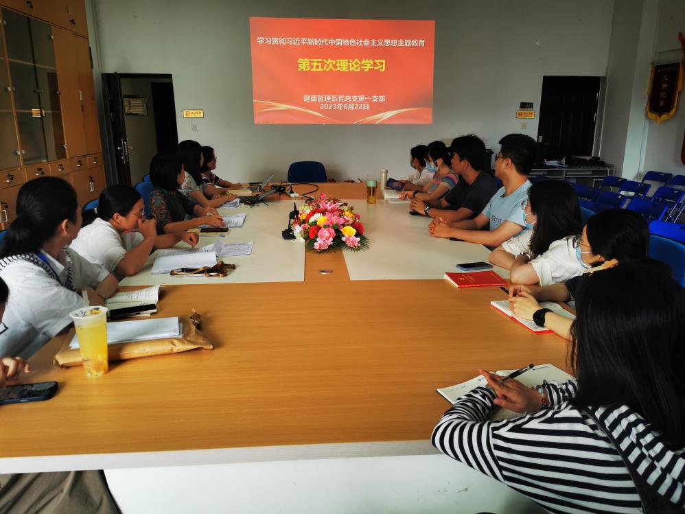 为深入开展学习贯彻习近平新时代中国特色社会主义思想主题教育走深走实,坚持读原著学原文悟原理,6月22日,健康管理系党总支第一支部于健康管理系会议室召开第五次专题理论学习活动。