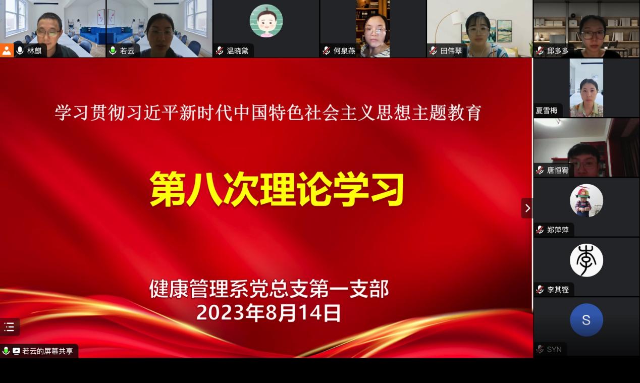 为深入开展学习贯彻习近平新时代中国特色社会主义思想主题教育走深走实,坚持读原著学原文悟原理,8月14日,健康管理系党总支第一支部以线上会议形式召开第八次专题理论学习活动。