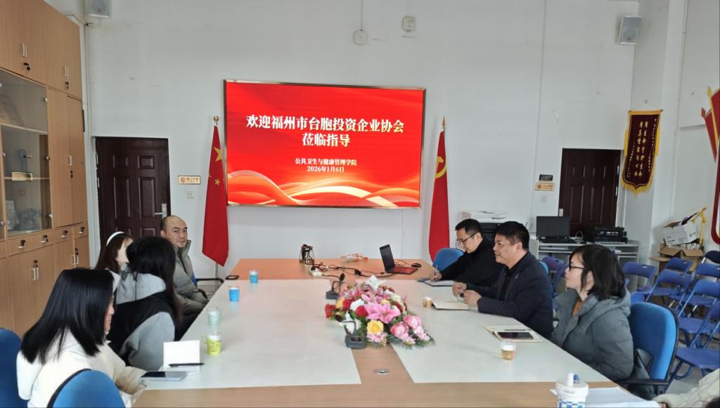 为推进闽台在健康管理与数字医疗领域的合作交流,1月6日,福州市台胞投资企业协会数经办负责人吴升桦等一行来访我校,公共卫生与健康管理学院负责人及相关教师共同参与交流。