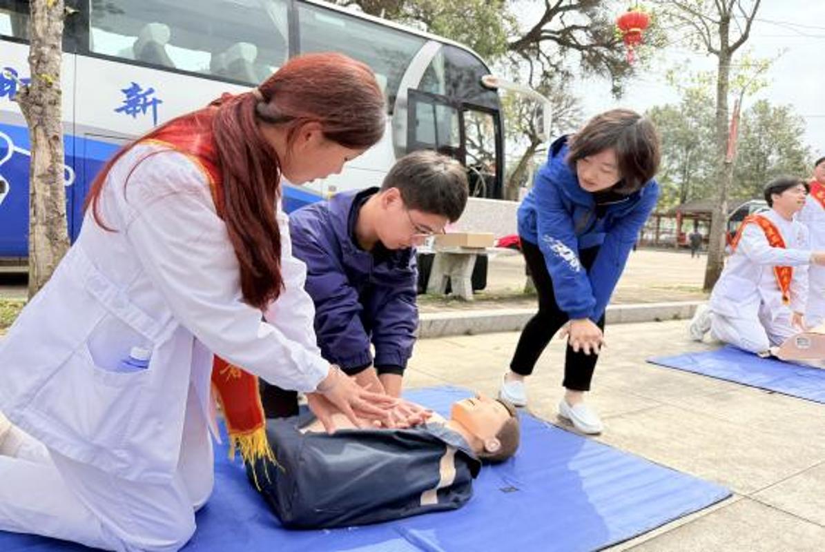 依托护理专业优势,师生在村口广场开展健康义诊与急救科普宣传志愿服务。大家为村民免费测量血压、血糖,发放常用药品并细致讲解用药规范;现场演示心肺复苏、海姆立克急救法,手把手指导村民实操练习,把实用健康技能与暖心服务送到村民家门口。村民们踊跃参与、认真学习,对师生专业、耐心、贴心的服务频频点赞,用实际行动诠释了护理人的责任与温度。