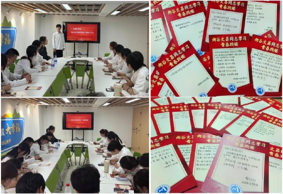 观看情景党课后,学院组织拟发展对象和入党积极分子召开学习心得分享会。同学们围绕“我从谷文昌同志身上学到了什么”主题,结合“为民情怀、实干担当、久久为功、正确政绩观”等关键词,逐一进行发言。大家纷纷表示,谷文昌同志是“四有”干部的楷模,是树立和践行正确政绩观的典范,要以他为榜样,坚定理想信念,厚植为民情怀。为将学习感悟转化为实际行动,现场同步开展“向谷文昌同志学习・青春践诺”活动。同学们手持便签纸与签字笔,郑重写下若干条个人具体承诺并署名,内容涵盖勤奋学习、服务同学、主动担当、廉洁自律、积极参与志愿服务等方面。一句句青春誓言,彰显了医工学子向榜样看齐、以行动践初心的坚定决心。