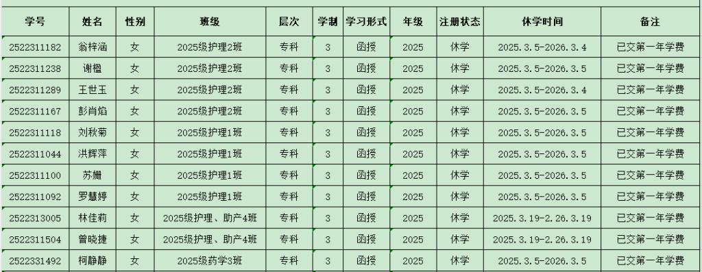2025年3月申请休学学生名单