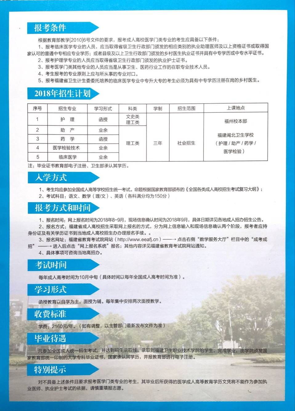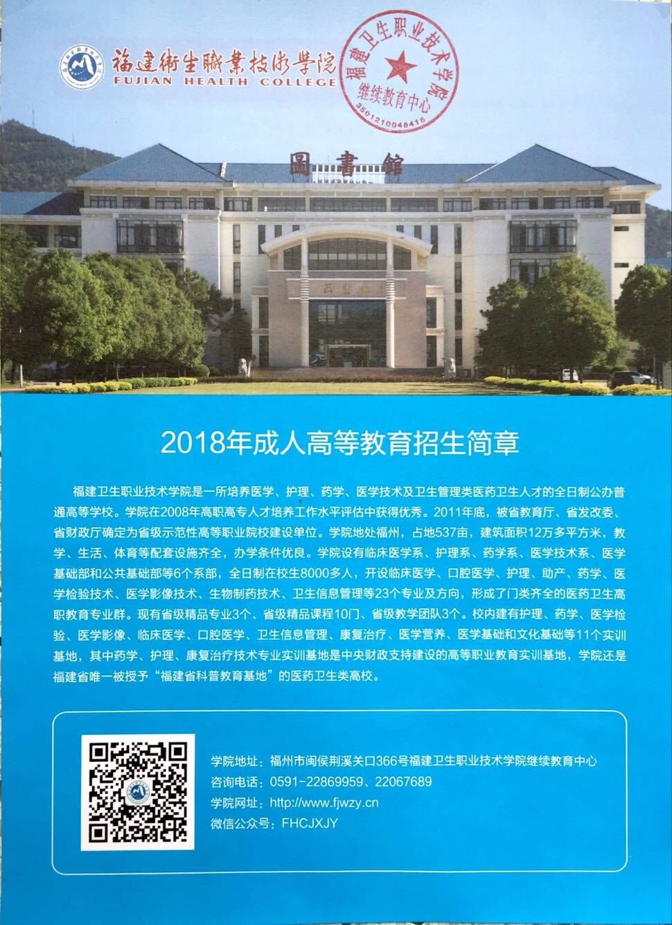 2018年福建卫生职业技术学院成人教育招生简章